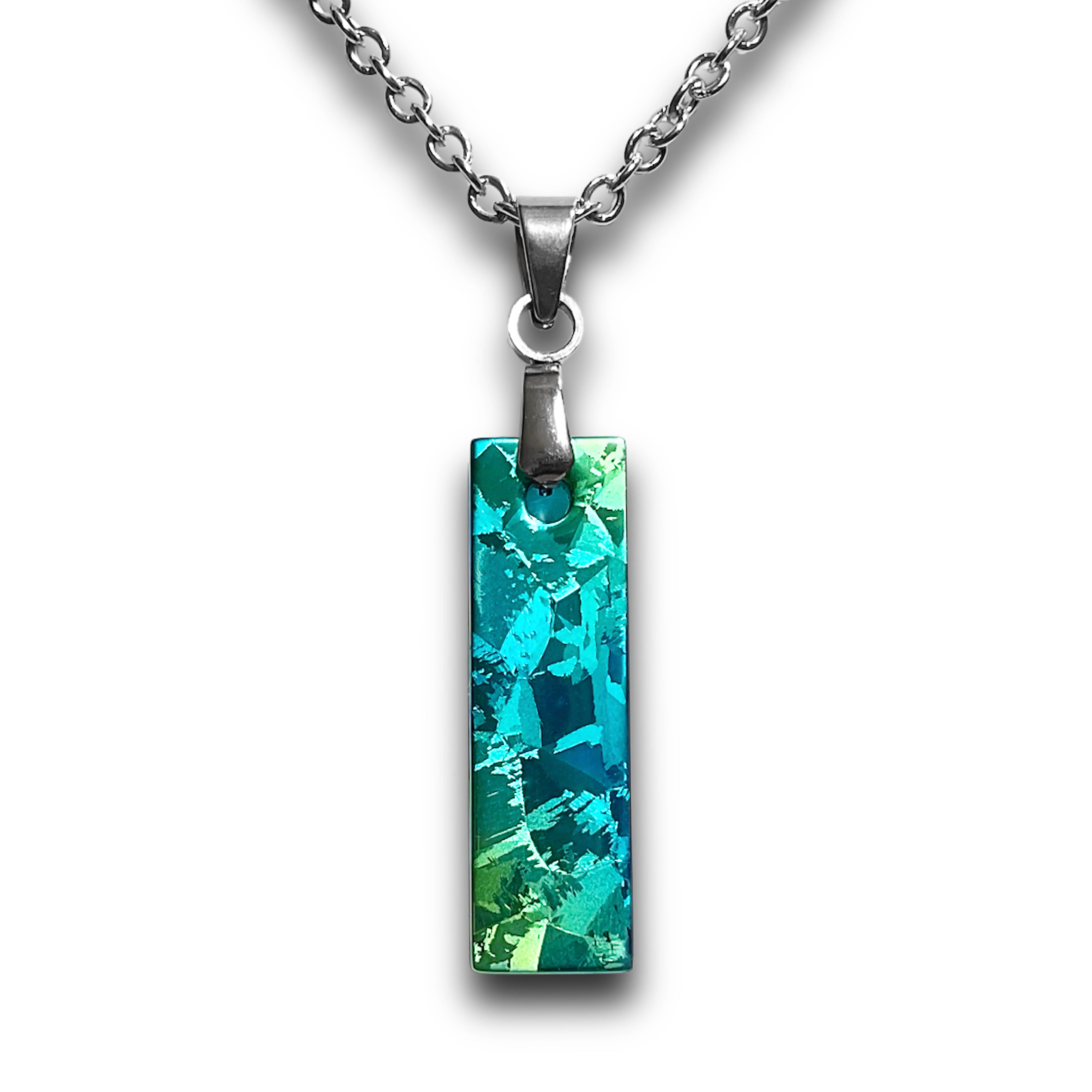 【グラデーションターコイズ×リーフグリーン】結晶化チタン ペンダントネックレス #672