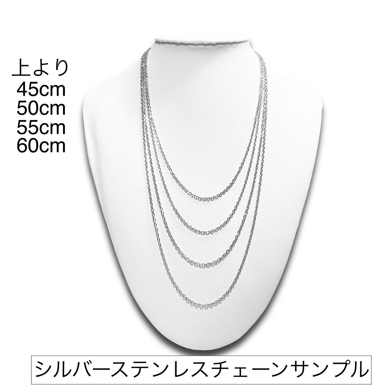 ・長さ:黒紐45-50 cm(調節可能)/シルバーステンレスチェーン45cm・50cm・55cm・60cm